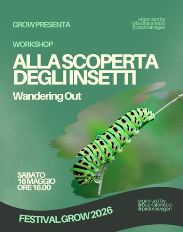 🐞 Al Festival Grow potrai scoprire il loro affascinante mondo insieme a Wandering Out, in un laboratorio all’aria aperta dedicato all’osservazione e alla conoscenza degli insetti.