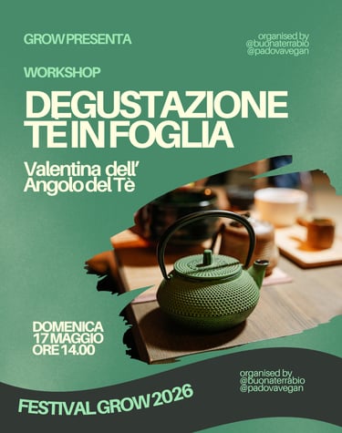 🍵 Durante il festival potrai partecipare a una degustazione guidata di tè in foglia con Valentina, per scoprire aromi, storie e tradizioni legate a questa antica bevanda.