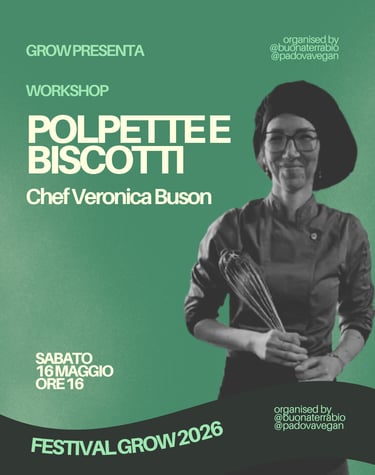 🥕 Durante il Festival Grow potrai partecipare a un laboratorio di cucina guidato dalla Chef Veronica Buson, da anni vegana e appassionata promotrice di una cucina vegetale portata avanti con dolcezza, inclusione e grande professionalità.