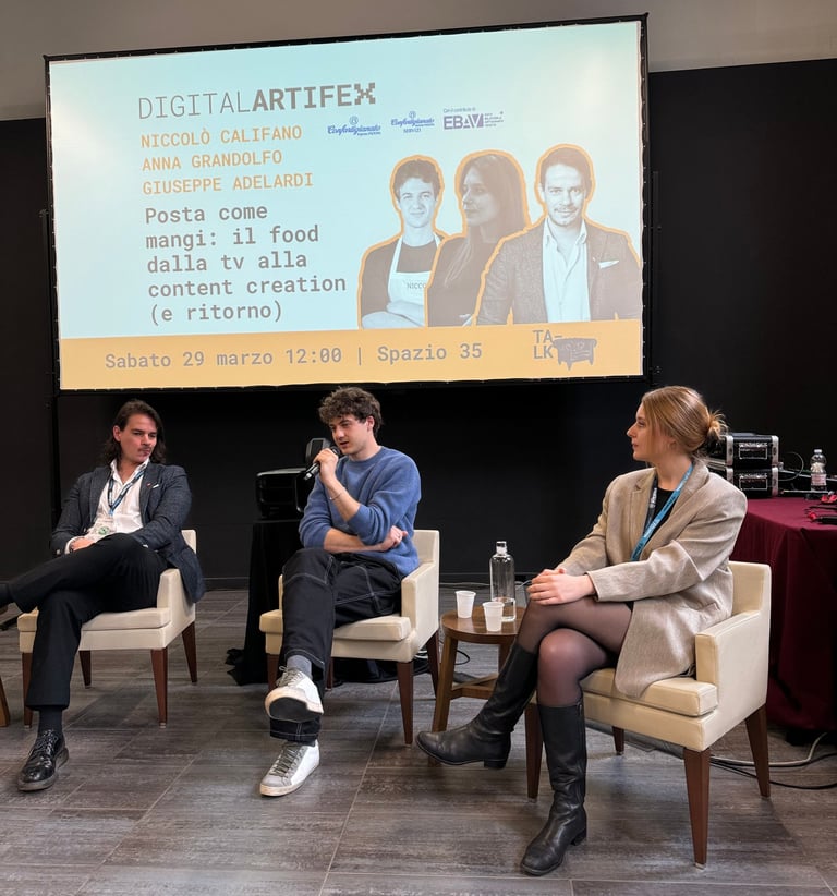Con me c’erano Niccolò Califano e Giuseppe Adelardi, e grazie alla moderazione di Alberto Antonello è nata una connessione davvero stimolante che ci ha permesso di discutere temi legati alla comunicazione del cibo dai media tradizionali ai social.