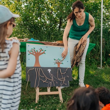 Simona di @leggimiunlibro ha guidato i bambini in un laboratorio su come parlano gli alberi;