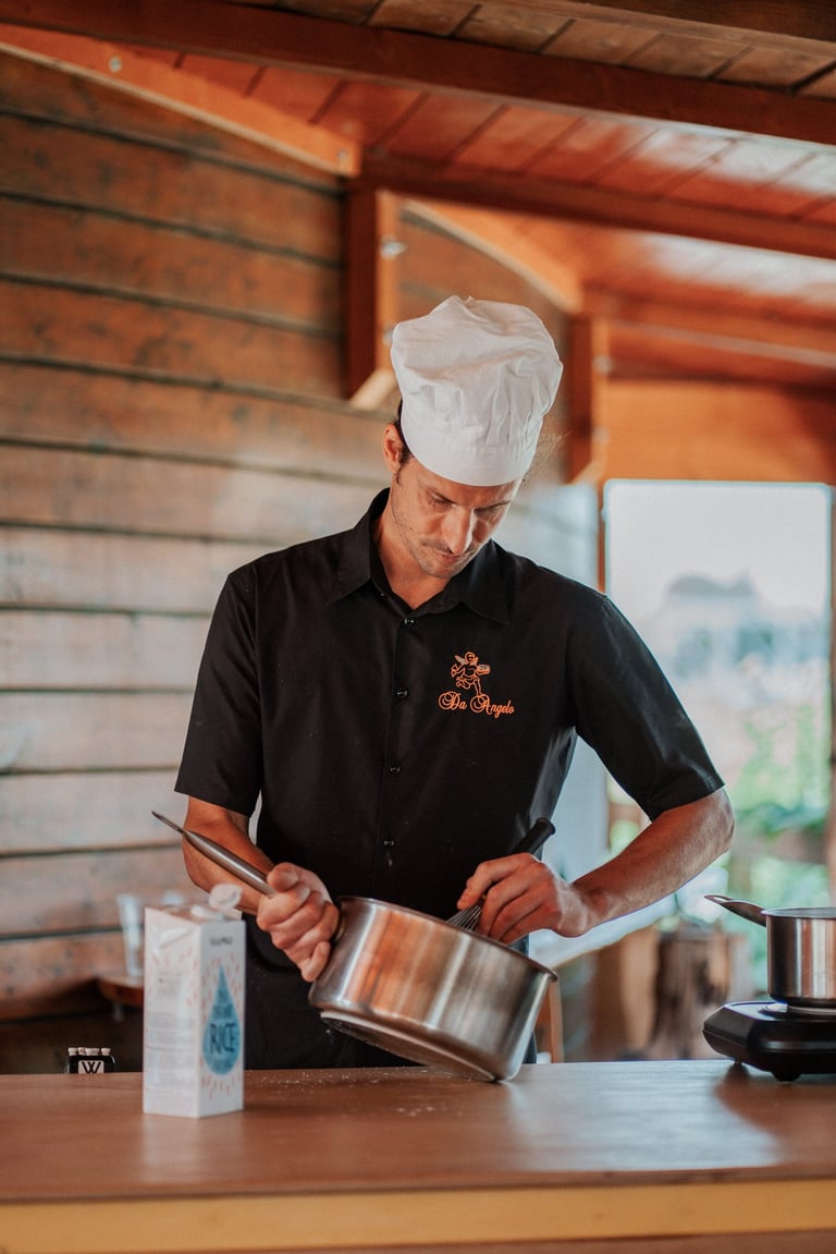 Showcooking di crema pasticcera a cura di Pasticceria da Angelo, che ha anche offerto una deliziosa millefoglie vegana ai partecipanti di Yoga e del Run Club;