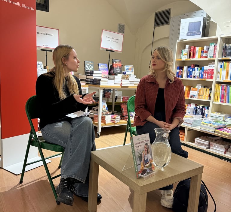 Ieri, il 23 Novembre, ho avuto la gioia di accompagnare la presentazione del libro “La mia pasticceria vegetale” di Fabiola Di Sotto e di chiacchierare con lei attraverso alcune domande sul suo percorso. Abbiamo parlato di come i dolci in versione vegetale siano davvero alla portata di tuttə: Fabiola propone una guida che va dalle ricette più semplici a quelle un po’ più complesse, sempre con ingredienti facilmente reperibili.